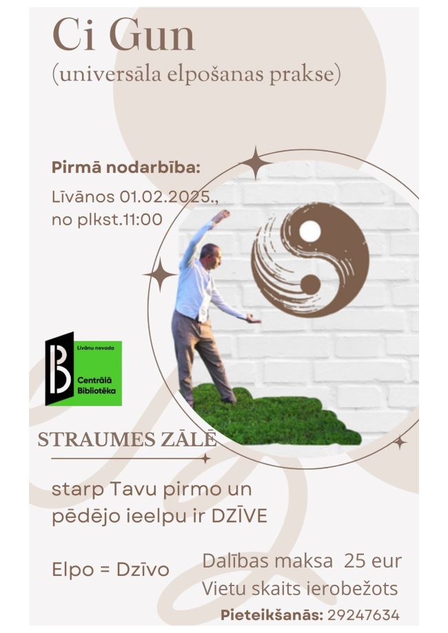 1.februārī plkst. 11.00 Līvānu bibliotēkas Straumes zālē notiks Ci Gun universāla elpošanas prakse.