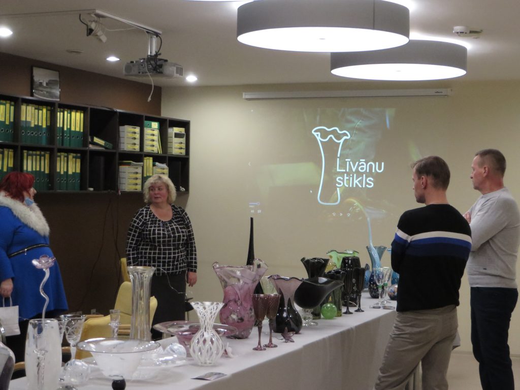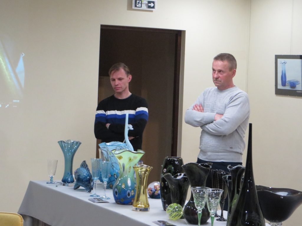 Tikšanās ar Līvānu stikla un amatniecības centra stikla pūtējiem Aleksandru Logvinu, Valēriju Veisu un izstāžu kuratori Kristīni Lipkovu.