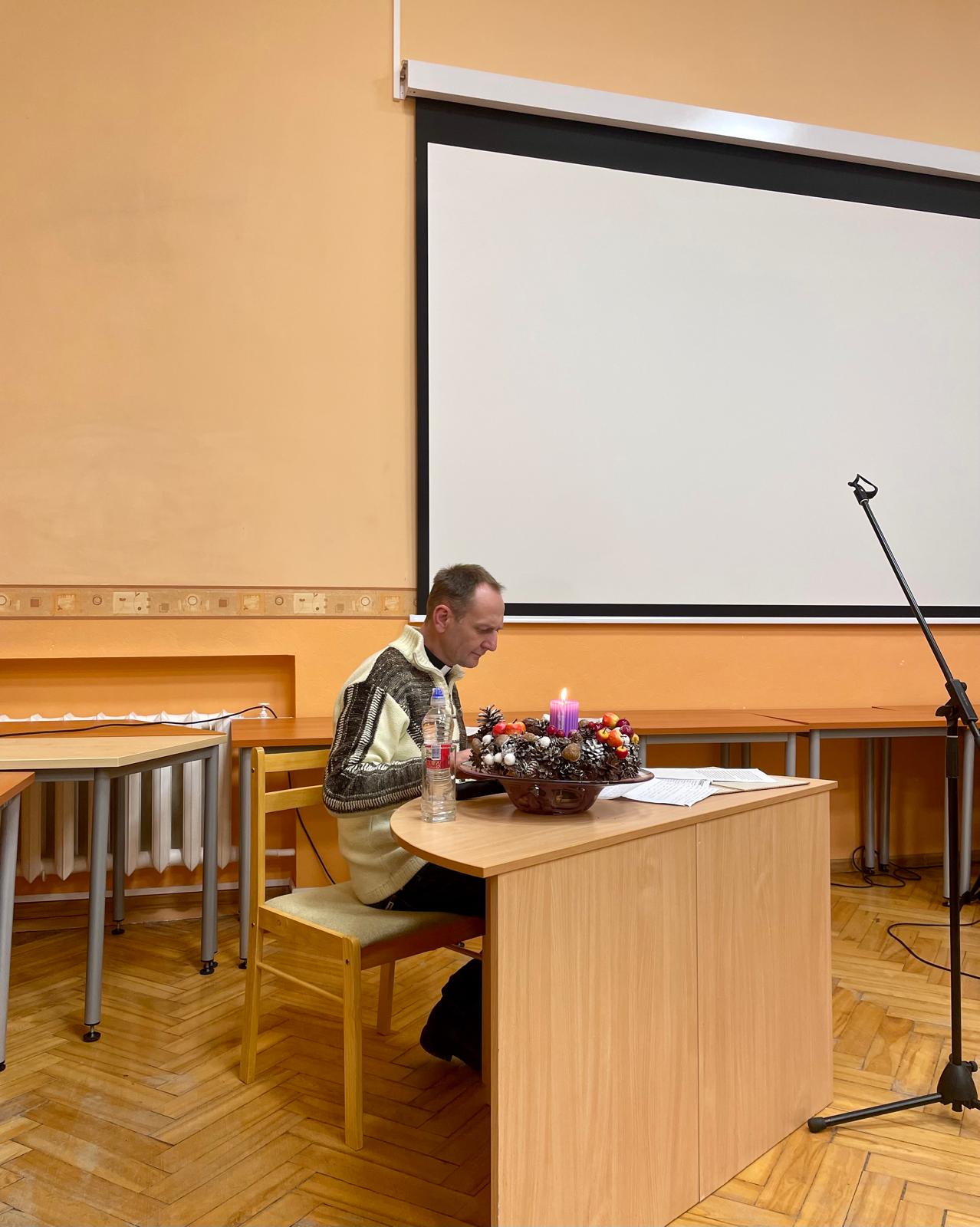 11. decembra pēcpusdienā valdīja sirsnīga un garīgi piepildīta gaisotne, jo norisinājās tikšanās ar priesteri Juri Zarānu, pulcējot ikvienu, kurš Adventes laikā vēlējās apstāties, saklausīt klusumu un sagatavot sirdi Ziemassvētkiem.